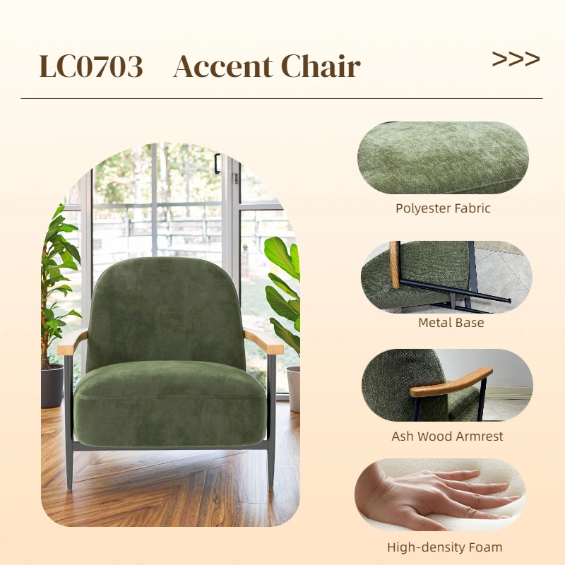 Design: Mid-century modern style with contrasting materials (metal, wood, fabric) for a timeless look.